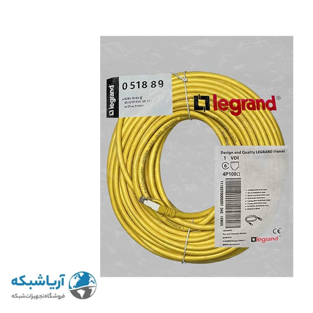 یکی از شرکتهای تولیدکننده تجهیزات شبکه شرکت چینی لگراند است که سابقه درخشانی در این زمینه دارد. پچ کورد شبکه لگراند (کابل لن) Cat6 SFTP با روکش PVC زرد 25 متری محصولی از این برند است که با طبقه بندی Cat6 ساخته شده است. سرعت انتقال اطلاعات این پچ کورد 1 گیگابیت بر ثانیه و پهنای باند آن 250 مگاهرتز بر ثانیه است. این پچ کورد با روکشی از جنس PVC محافظت میشود که انعطاف پذیری بالایی دارد. اما در صورت آتش سوزی، هالوژن و گازهای سمی منتشر کرده و اشتعال پذیر است. در ساختار این پچ کورد SFTP یک فویل و یک شیلد به دور کل کابل به کار رفته که از آن در مقابل نویز و تداخل الکترو مغناطیسی محافظت میکند. جنس مغزی این پچ کورد به صورت تمام مس – CCC است.