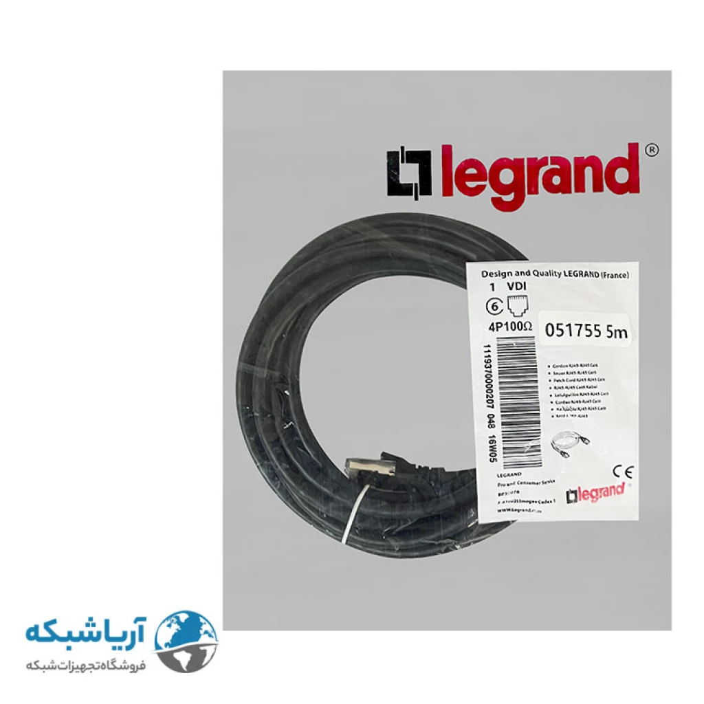 یکی از شرکتهای تولیدکننده تجهیزات شبکه شرکت چینی لگراند است که سابقه درخشانی در این زمینه دارد. پچ کورد شبکه لگراند (کابل لن) Cat6 SFTP با روکش PVC مشکی 5 متری محصولی از این برند است که با طبقه بندی Cat6 ساخته شده است. سرعت انتقال اطلاعات این پچ کورد 1 گیگابیت بر ثانیه و پهنای باند آن 250 مگاهرتز بر ثانیه است. این پچ کورد با روکشی از جنس PVC محافظت میشود که انعطاف پذیری بالایی دارد. اما در صورت آتش سوزی، هالوژن و گازهای سمی منتشر کرده و اشتعال پذیر است. در ساختار این پچ کورد SFTP یک فویل و یک شیلد به دور کل کابل به کار رفته که از آن در مقابل نویز و تداخل الکترو مغناطیسی محافظت میکند. جنس مغزی این پچ کورد به صورت تمام مس – CCC است.